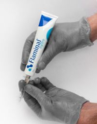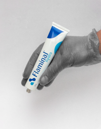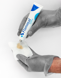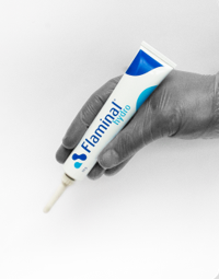 Flaminal® dissolve o tecido necrótico e aderências fibrinosas.